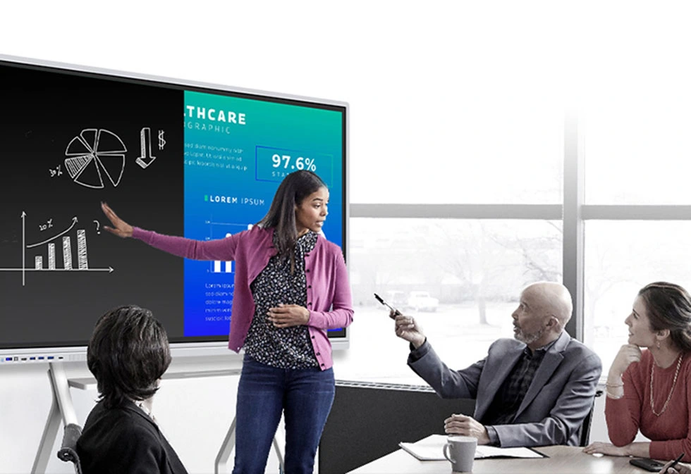 116palcový 4K UHD plochý panel nově definuje týmovou spolupráci tím, že nahrazuje těžkopádné zařízení jediným integrovaným řešením, které podporuje efektivnější komunikaci.