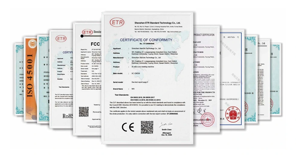 Bylo provedeno několik přísných profesionálních testů, aby byla zajištěna stabilní a spolehlivá kvalita produktu. V současné době továrna prošla certifikací systému řízení kvality ISO9001, certifikací pro úsporu energie, 3C, CE, ET, FCC, ROHS atd.