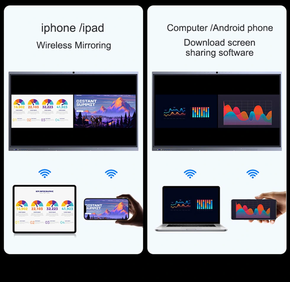 Vychutnejte si plynulé psaní, bezdrátovou spolupráci, HD vizuály a pohodlí chytré kanceláře vše v jednom s infračerveným dotykovým interaktivním displejem RK3588.